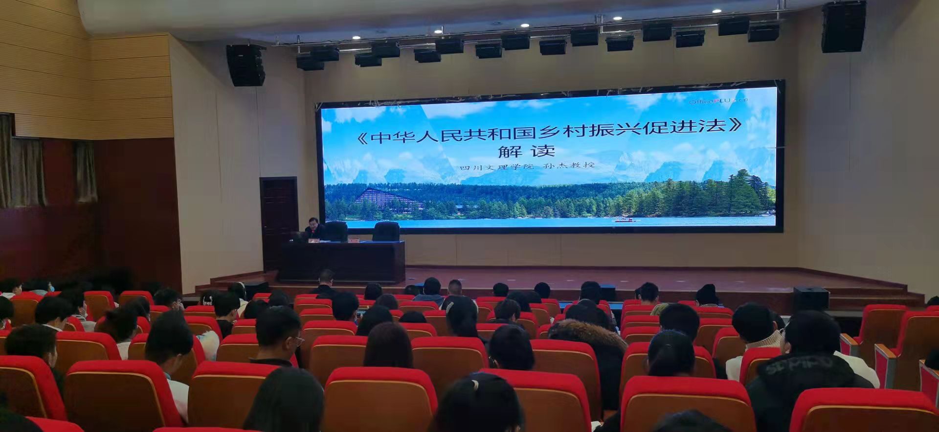 讲座中,孙教授从乡村振兴促进法的立法背景出发,全面阐述了乡村振兴促进法十章74条重点内容,重点对该法呈现的五大亮点进行了详细解读,深刻阐明了该法出台的重大意义,并结合达州乡村振兴面临的困境与问题,提出了推动乡村振兴促进法落地见效方面的思考和建议,对同学们未来从事乡村振兴服务具有较强的指导意义。