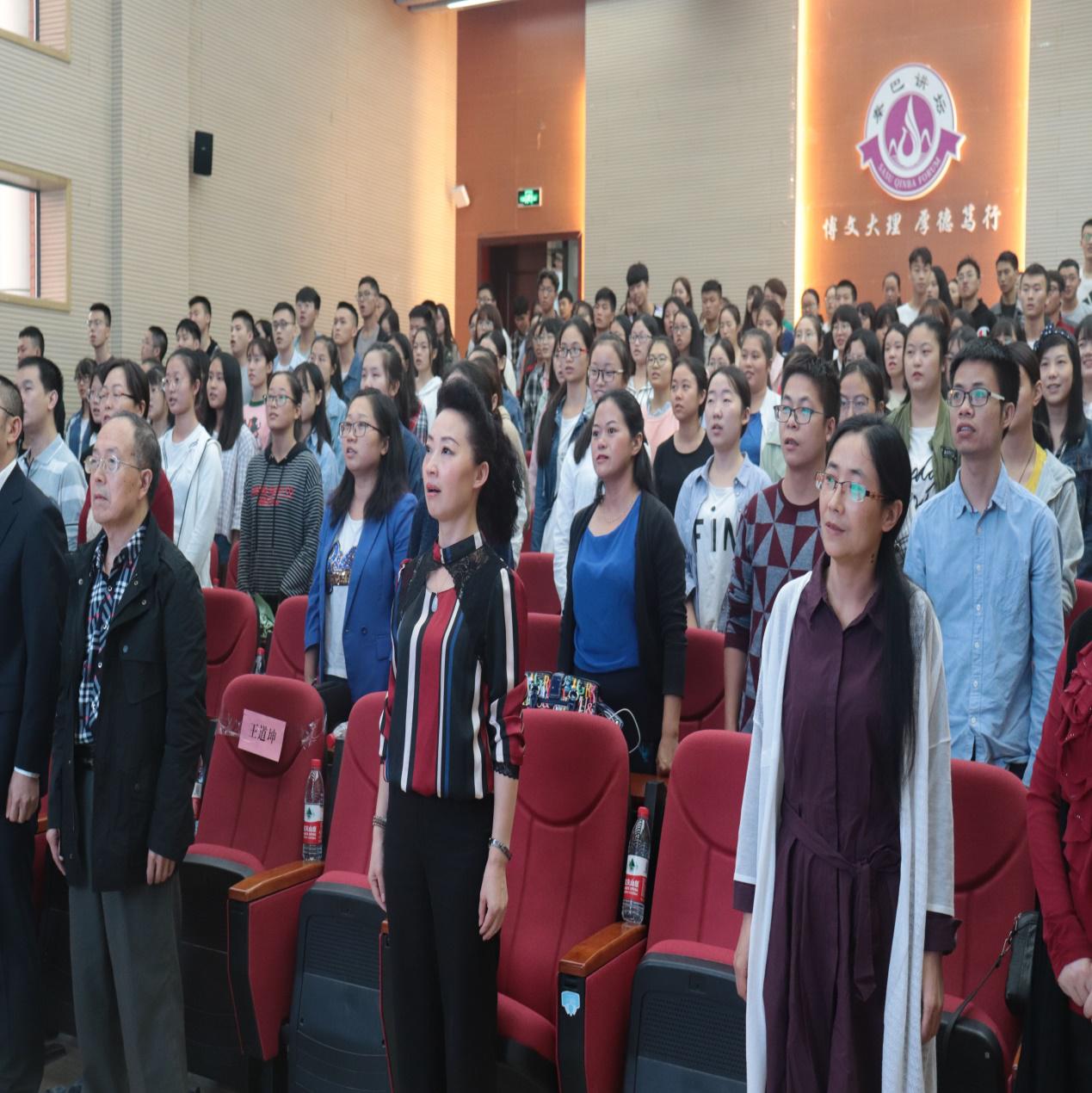 首先全体起立,奏唱国歌。