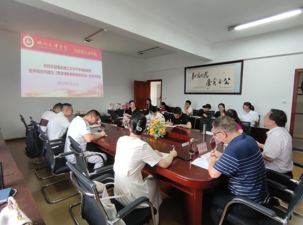 6月15日,重庆理工大学于冬梅副教授应邀在十大信誉官网博文楼611会议室作题为《思政课教师的使命担当》的学术报告。网投十大信誉可靠平台院长孙杰主持,网投十大信誉可靠平台党委书记刘春辉及全院教师参会。