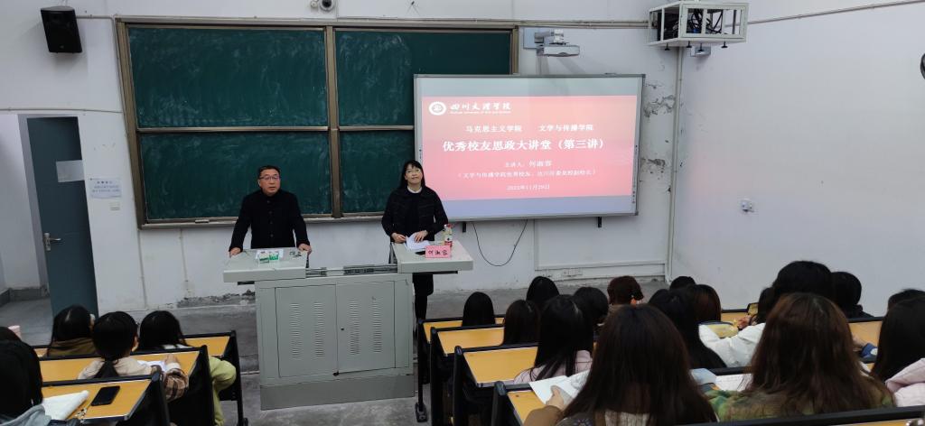 11月29日下午,十大信誉官网与文学与传播学院联合举办第三期“优秀校友思政大讲堂”。文学与传播学院优秀校友、达川区委党校副校长何淑容以《传承红色基因 赓续精神血脉——“飞夺泸定桥”的时代价值与启示》为题,为文学与传播学院汉语言文学专业同学、学生党支部党员及入党积极分子代表做了一堂精彩的讲座。网投十大信誉可靠平台党委书记刘春辉主持讲座。