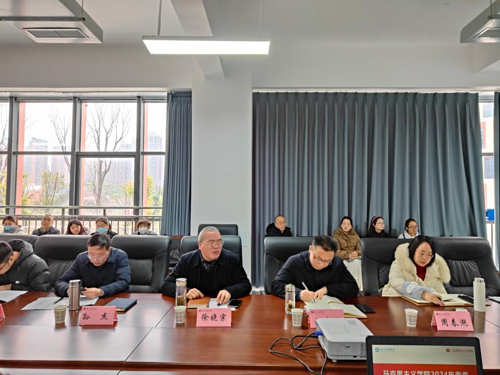 学院院长孙杰安排部署学院2024年教学、科研工作。孙杰首先回顾了学院2023年取得的重要成就,并对学院目前存在的问题进行了分析。他强调学院全体教职工要凝心聚力,主动作为,牢固树立学院主人翁意识,深入学习贯彻学校第二次党代会精神,以申硕为牵引,创造性地开展各项教学科研工作,努力为实现学校两步走发展目标而团结奋斗。并提出六点要求:一是以科研促学科,以高级别项目推动学科高质量建设,不断强化学术研究的马克思主义学科属性;二是以人才促发展,以塔石人才工程推动学院内涵式发展,着力培育新质生产力;三是以红色文化育人为牵引,推动学院特色发展,落实新时代红色文化育人八大工程;四是以教学质量提升为核心,持续加强思政课教学改革;五是以基层治理学院为平台,推动社会服务再上新台阶;六是以党建为引领,推动党建与业务工作深度结合。