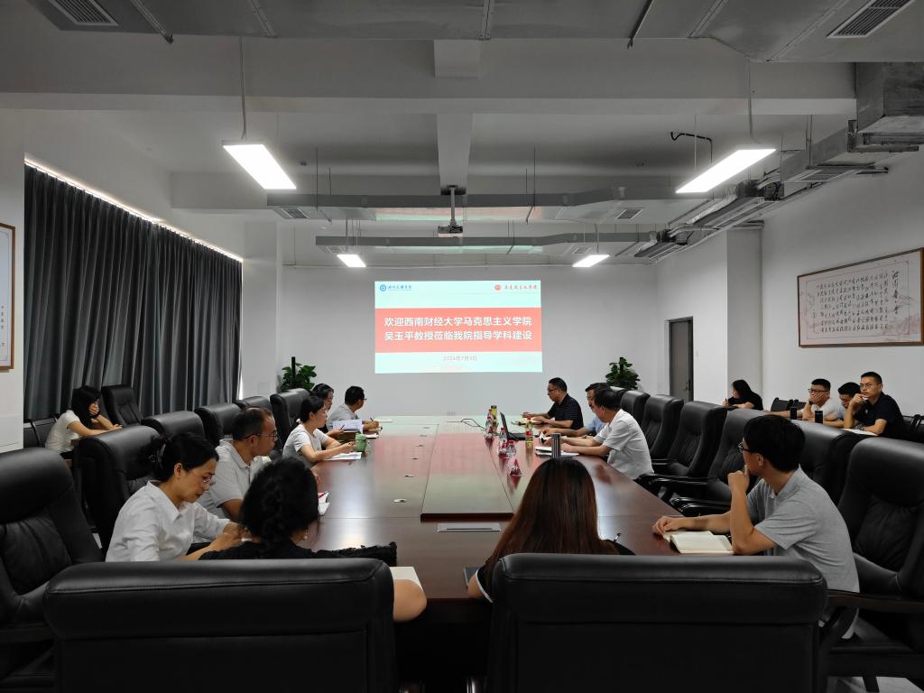 为深入推进马克思主义理论学科建设,提升思政课教学质量,应学院邀请,7月5日下午,西南财经大学网投十大信誉可靠平台吴玉平教授莅临十大信誉官网指导学科建设并参加座谈会。座谈会由学院院长孙杰教授主持,网投十大信誉可靠平台全体教师参加会议。