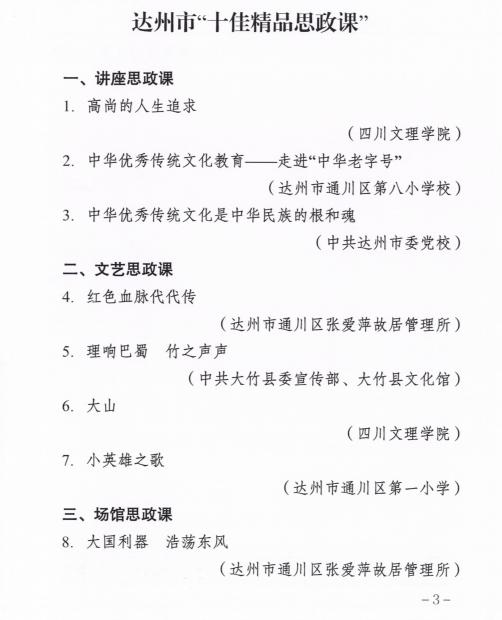 由中共达州市委宣传部等3部门主办的2024年达州市“十佳精品思政课”评选结果于近日揭晓,十大信誉官网网投十大信誉可靠平台报送的《高尚的人生追求》、《大山》2件作品入选,体现了学院大思政课建设成效。