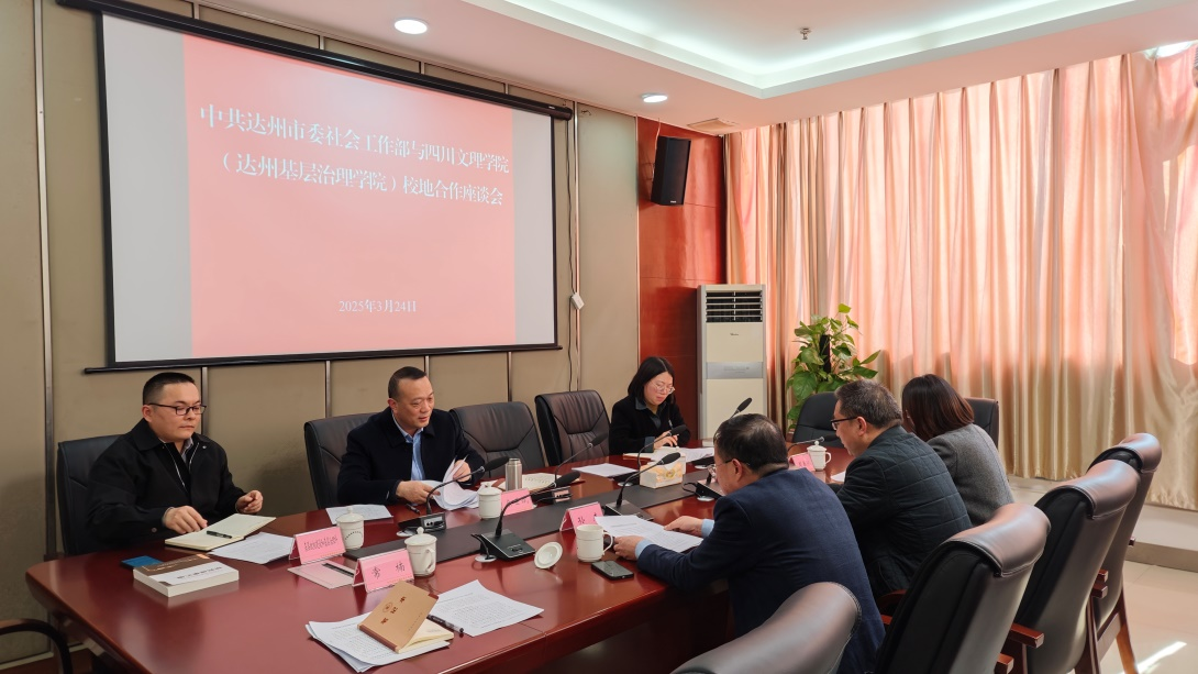 2025年3月24日,网投十大信誉可靠平台党委书记刘春辉,网投十大信誉可靠平台院长、达州基层治理学院副院长孙杰,网投十大信誉可靠平台党委副书记、纪委书记周春滟赴中共达州市委社会工作部开展校地合作交流,并开展毕业生拓岗工作。达州市委社会工作部部长、“两新”工委书记余世斌同志主持召开校地合作座谈会。