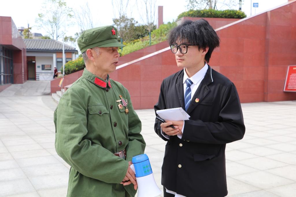 达州烈士陵园的老兵讲解员也主动来到队伍前为同学们进行宣讲,老兵吴让明以饱满的精神、充沛的情感,讲述了一个个自己亲身经历的红色故事。“我的第三封入党申请书,当时就放在这件衣服的左胸口袋里,和我的遗书一起。”当他说到这里时,同学们都肃然起敬,为之动容。