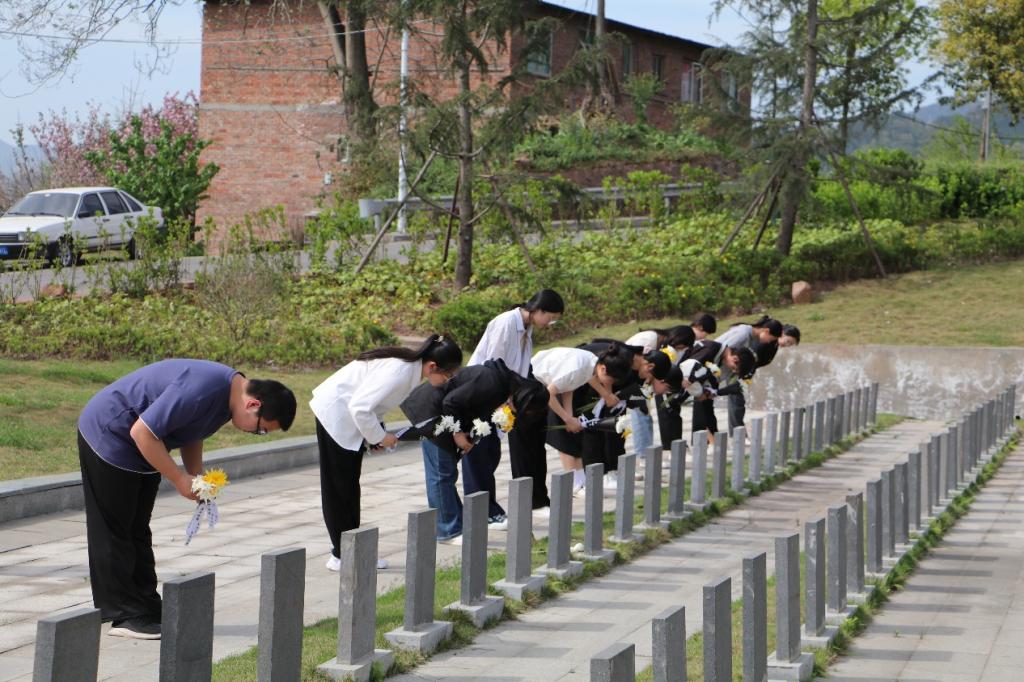 然后,同学们在鲁老师的带领下,开始了向烈士献花。不忘来时路,走好脚下路。献花过后,本次活动也来到尾声。清明祭扫英烈,是一堂生动的党史教育课。站在烈士墓前,重温英烈事迹,在思想深处接受一次深刻的党性洗礼。当代大学生应学习革命英烈为党和国家奉献的精神,继承革命英烈的光荣传统,沿着革命先辈开创的道路砥砺前行,不断推进新时代的伟大斗争与伟大革命,为建设中国特色社会主义贡献青春力量。