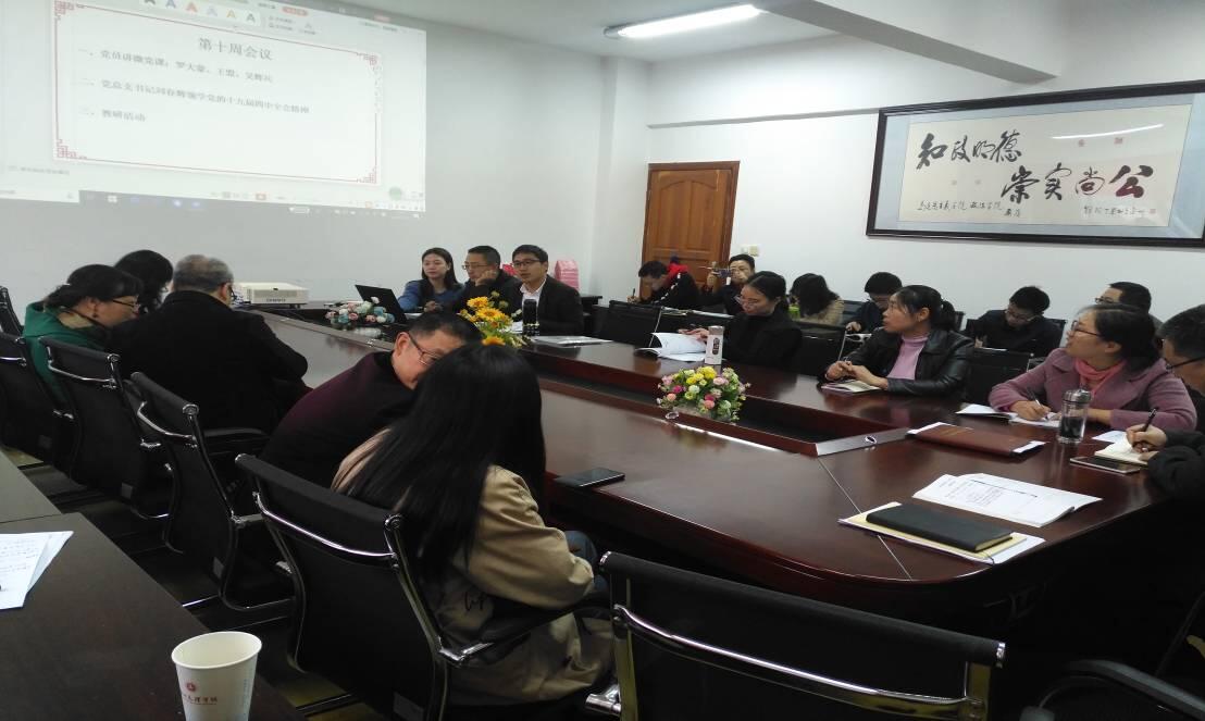为及时传达全会精神,11月6日下午,网投十大信誉可靠平台党总支书记刘春辉主持召开十九届四中全会精神专题学习会。网投十大信誉可靠平台全体教师参加会议。