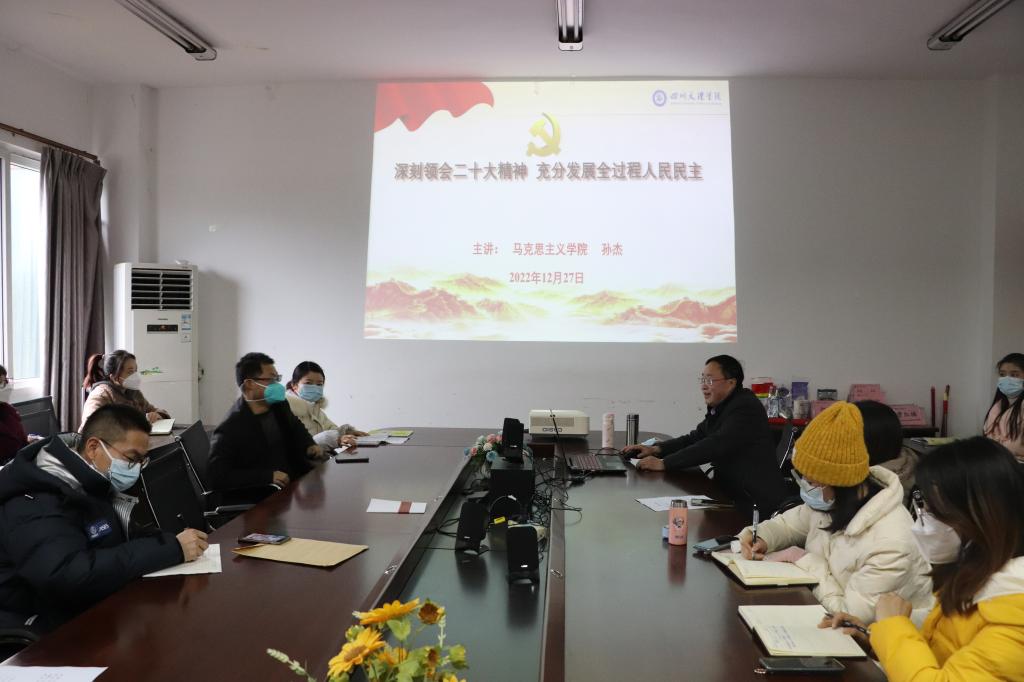 为深入学习贯彻党的二十大精神,20221227日,院长孙杰教授在博文楼611会议室为网投十大信誉可靠平台全体教师做“深刻领会二十大精神 充分发展全过程人民民主”的专题报告。