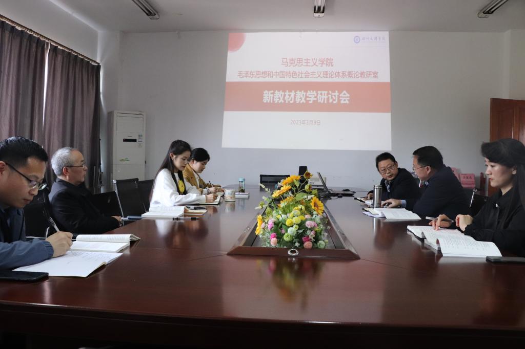 39日,毛泽东思想和中国特色社会主义理论体系概论课教研室在博文楼611会议室召开新教材教学研讨会,教研室主任王维主持会议。