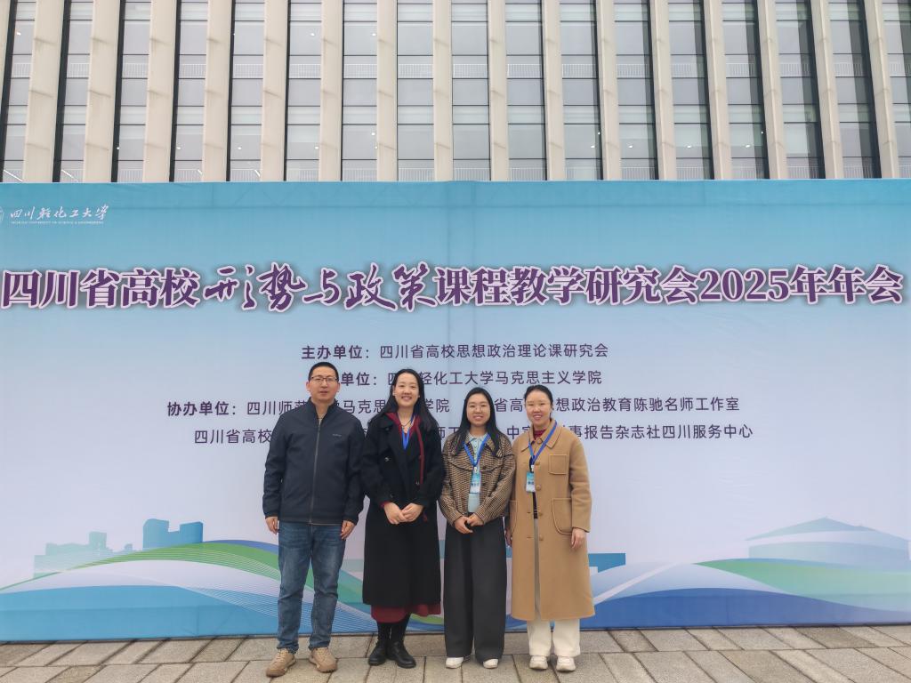 为深入学习贯彻党的二十届三中全会精神、习近平总书记关于学校思想政治工作和思政课建设的重要指示批示精神,牢牢把握教育的政治属性、人民属性、战略属性,守正创新推动全省思政课建设高质量发展,推动习近平新时代中国特色社会主义思想进教材、进课堂、进头脑。3月22日—23日,四川省高校“形势与政策”课程教学研究会2025年年会在四川轻化工大学举行。此次会议由四川省教育厅指导,四川省高校思想政治理论课研究会主办,四川轻化工大学网投十大信誉可靠平台承办,四川师范大学网投十大信誉可靠平台、四川省高校思想政治教育陈驰名师工作室、四川省高校思想政治教育唐晓勇名师工作室、中宣部时事报告杂志社四川服务中心协办。学院形势与政策教研室主任梁云,青年教师黄珊、丁玉洁、陈春莲参加会议。