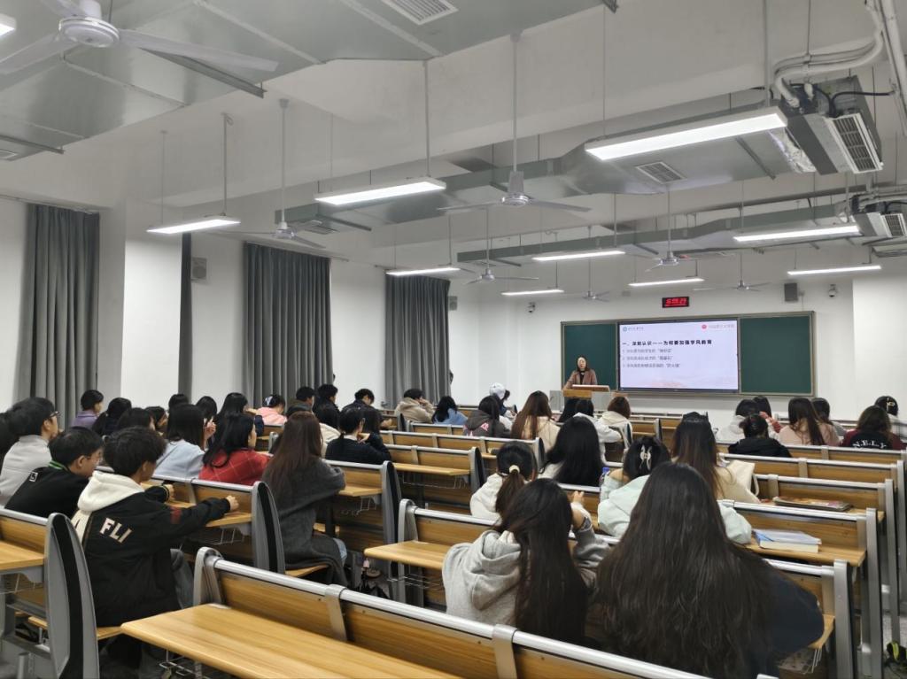 为持续深化学风建设,扎实落实“铸魂育人”根本任务,2025 年11月9日下午,十大信誉官网在莲湖东区教学楼 B302 教室开展“端正学风 铸魂育人”学风建设专题活动。学院党委副书记周春滟主持活动,各班班委全程参与专题学习。